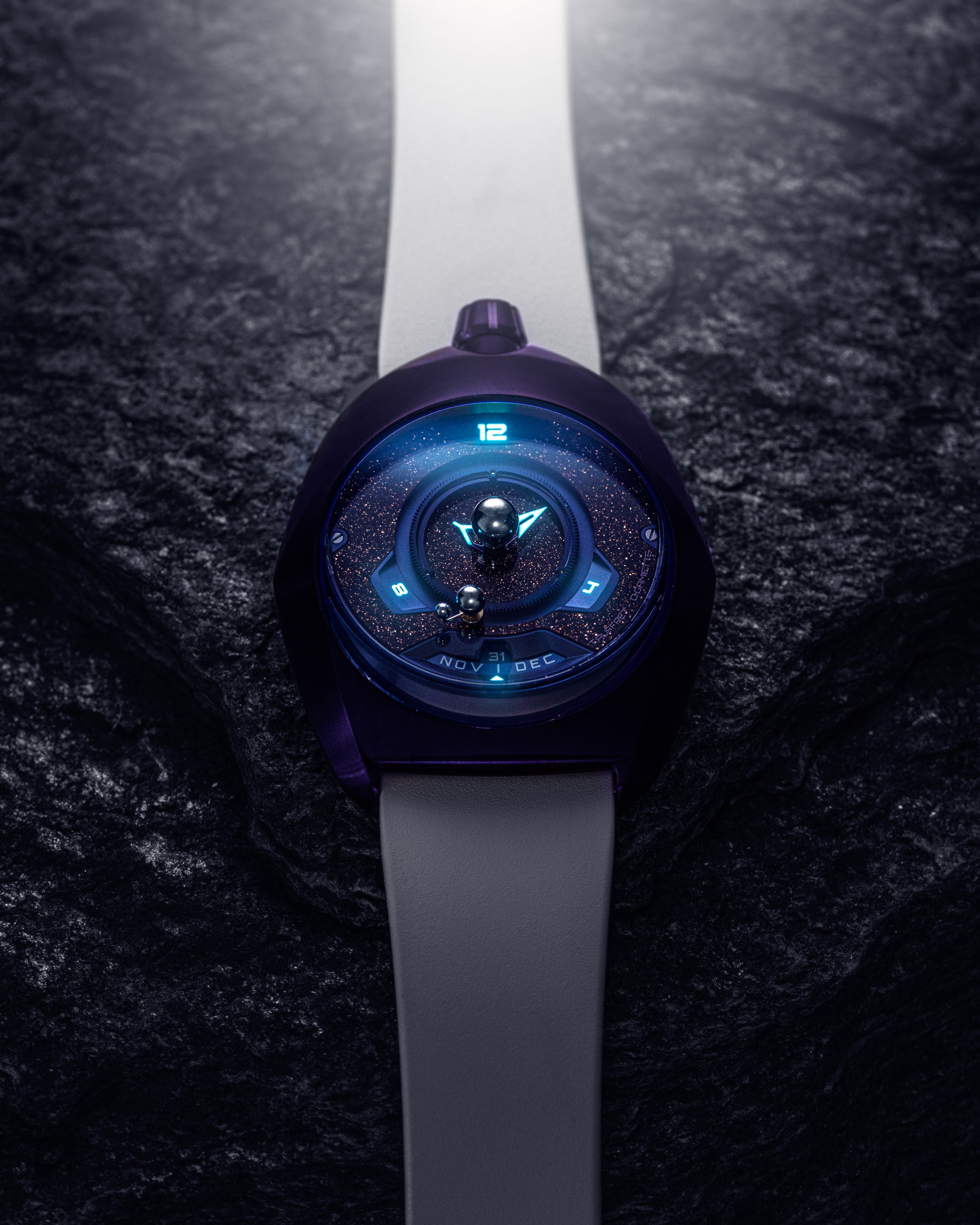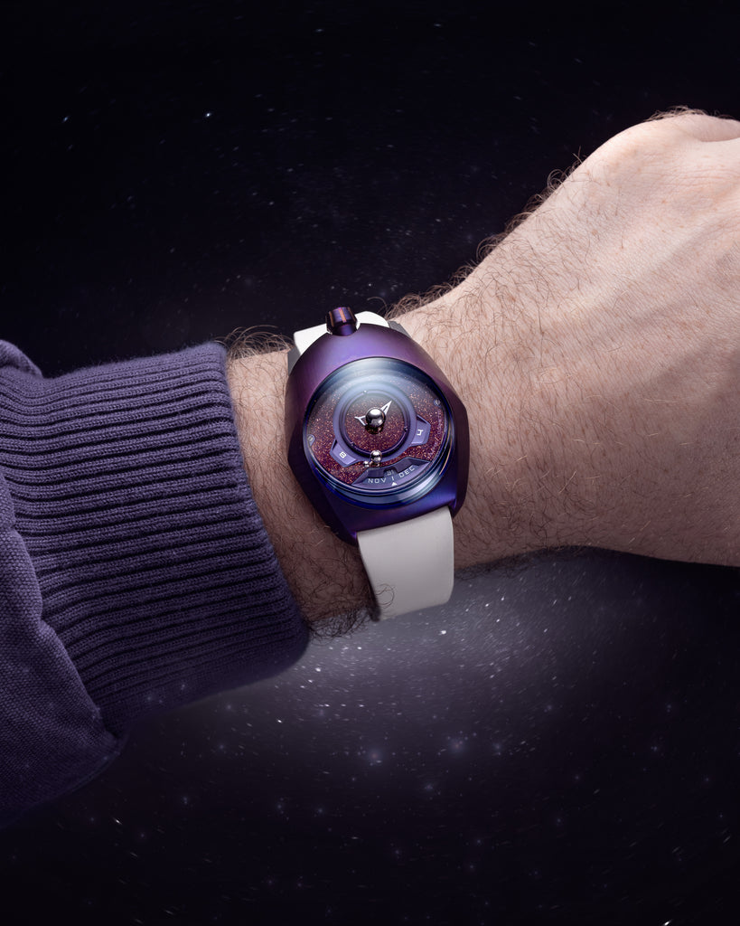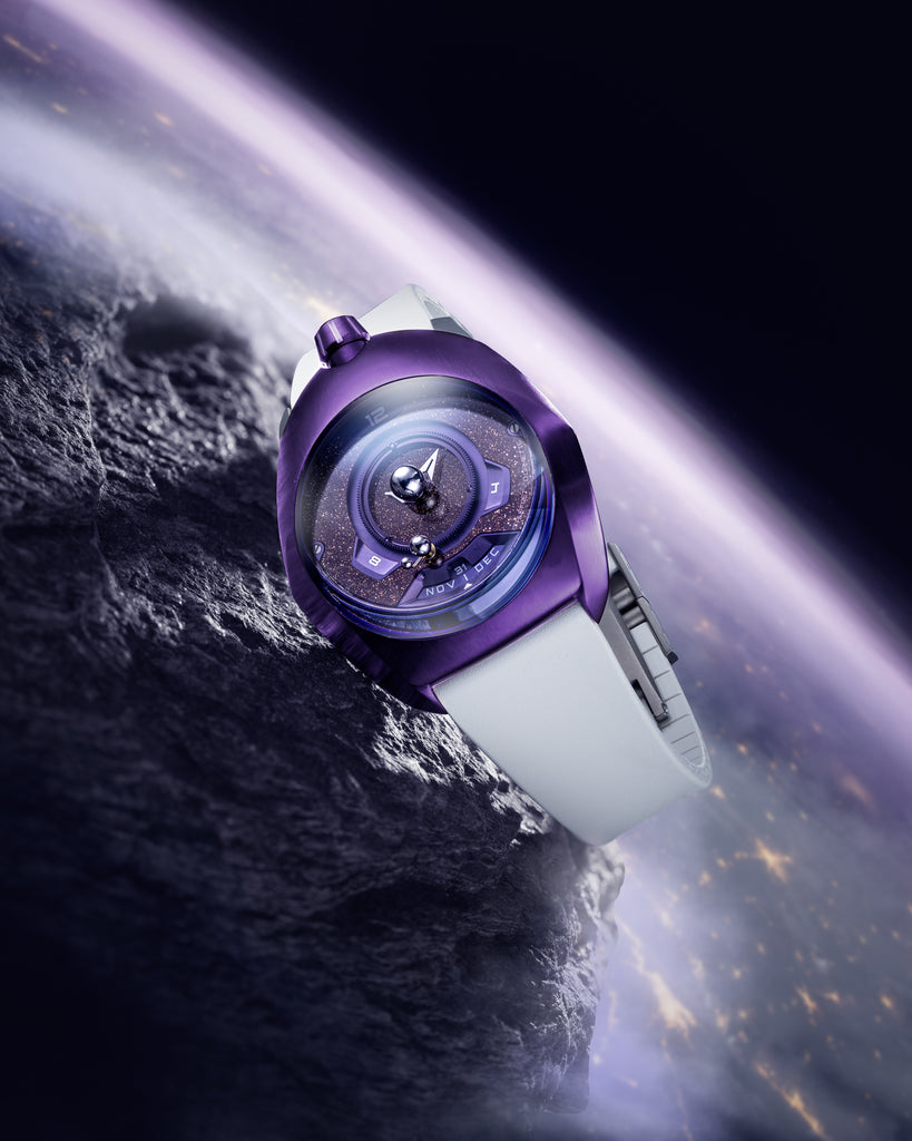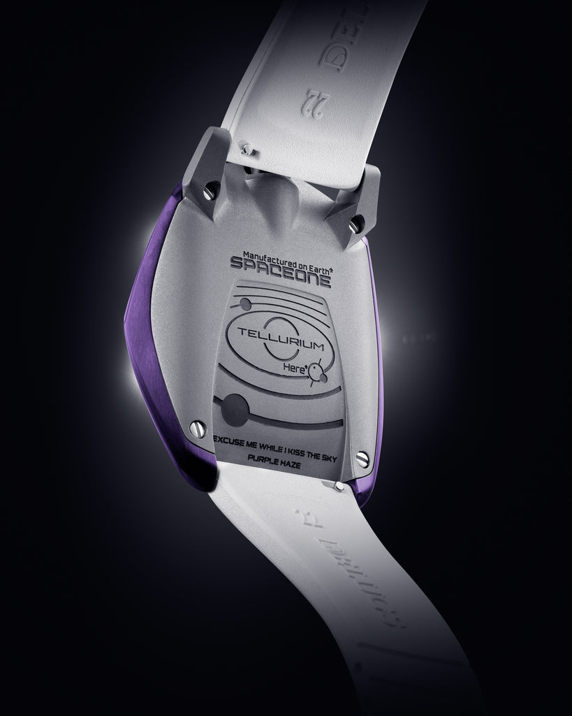 The Tellurium is an exclusive complication developed within the SpaceOne workshop.