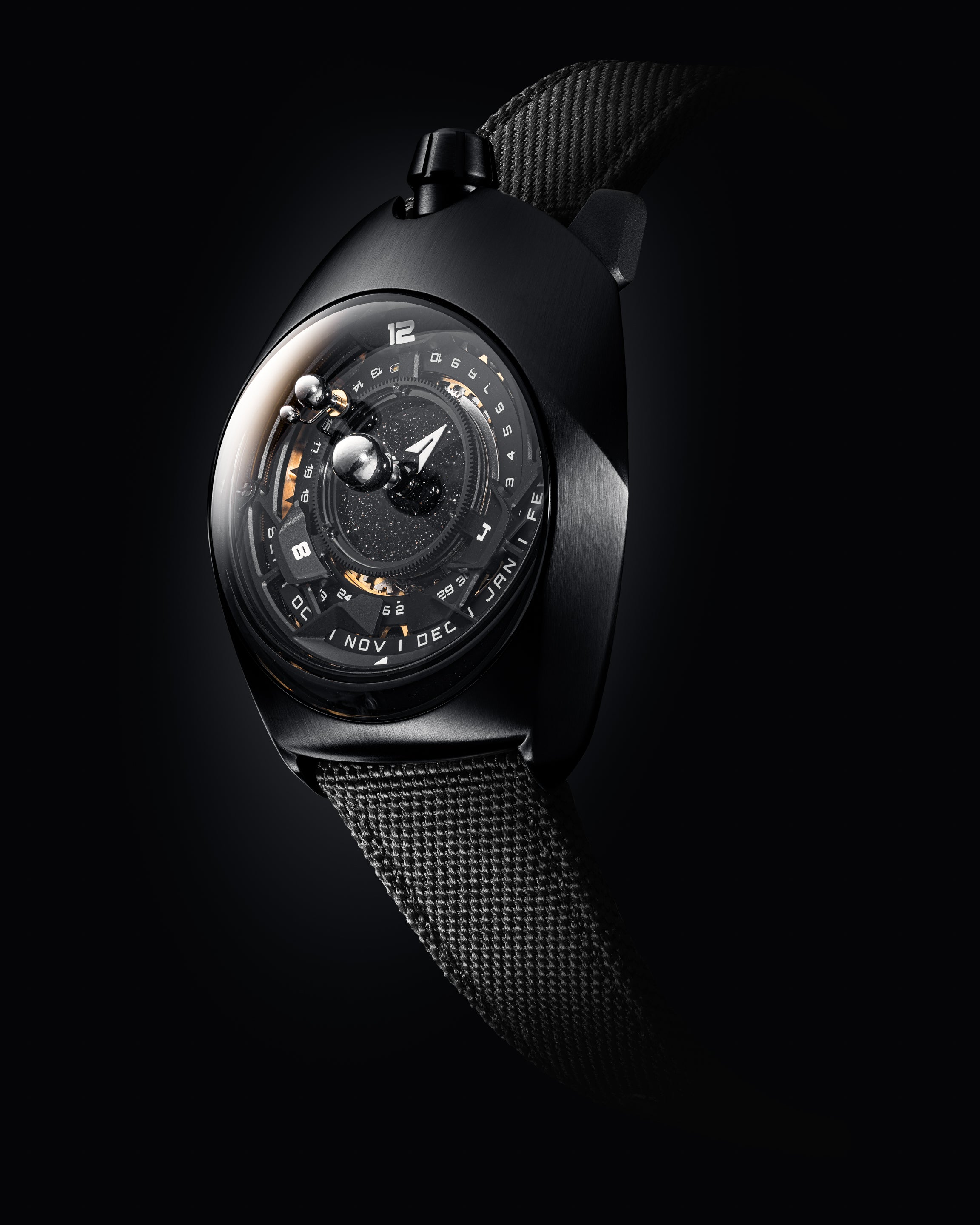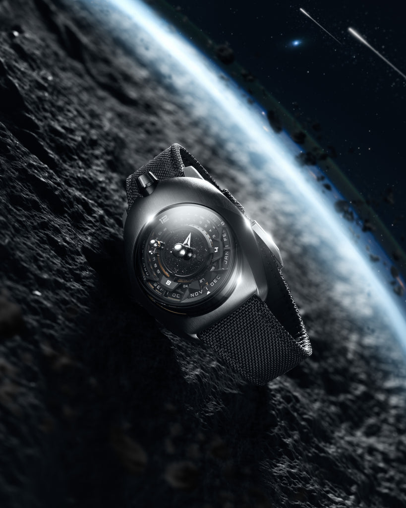 The Tellurium is an exclusive complication developed within the SpaceOne workshop.